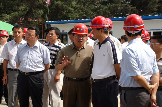 8月4日,省小城鎮(zhèn)建設(shè)考察團(tuán)一行到牡,省建設(shè)廳廳長(zhǎng)楊占報(bào)由主管城建副市長(zhǎng)崔培元陪同,到公司工地視察。公司董事長(zhǎng)張秋向楊占報(bào)廳長(zhǎng)對(duì)創(chuàng)建省標(biāo)準(zhǔn)化工地的情況做了詳細(xì)的介紹。