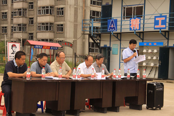 誓師動員會上由項目部關(guān)翔飛宣讀了鳳凰城A組團(tuán)項目C區(qū)二標(biāo)段工程施工“百日會戰(zhàn)”實(shí)施方案。為確?!鞍偃諘?zhàn)”的工作取得實(shí)效,集團(tuán)決定對百日會戰(zhàn)的實(shí)施過程及結(jié)果進(jìn)行驗收和評價。屆時將對有功人員表彰和重獎。將對有過人員進(jìn)行問責(zé)和處罰。要求全體干部職工,以高度的責(zé)任心和使命感,以確保工期質(zhì)量安全,打造精品工程為宗旨;造福百姓奉獻(xiàn)社會,為牡丹江市的保障性住房建設(shè)貢獻(xiàn)力量。